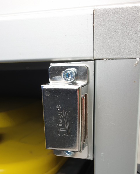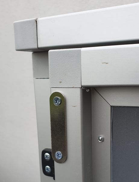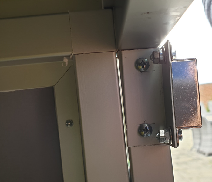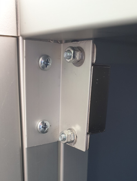 Zusätzlich habe ich die Türen jeweils oben rechts mit einem federbelasteten Schnappverschluss versehen. Dieser sorgt dafür, dass die Tür sich auch nicht durch starken Sturm öffnet und dass die Tür immer fest am Korpus anliegt.