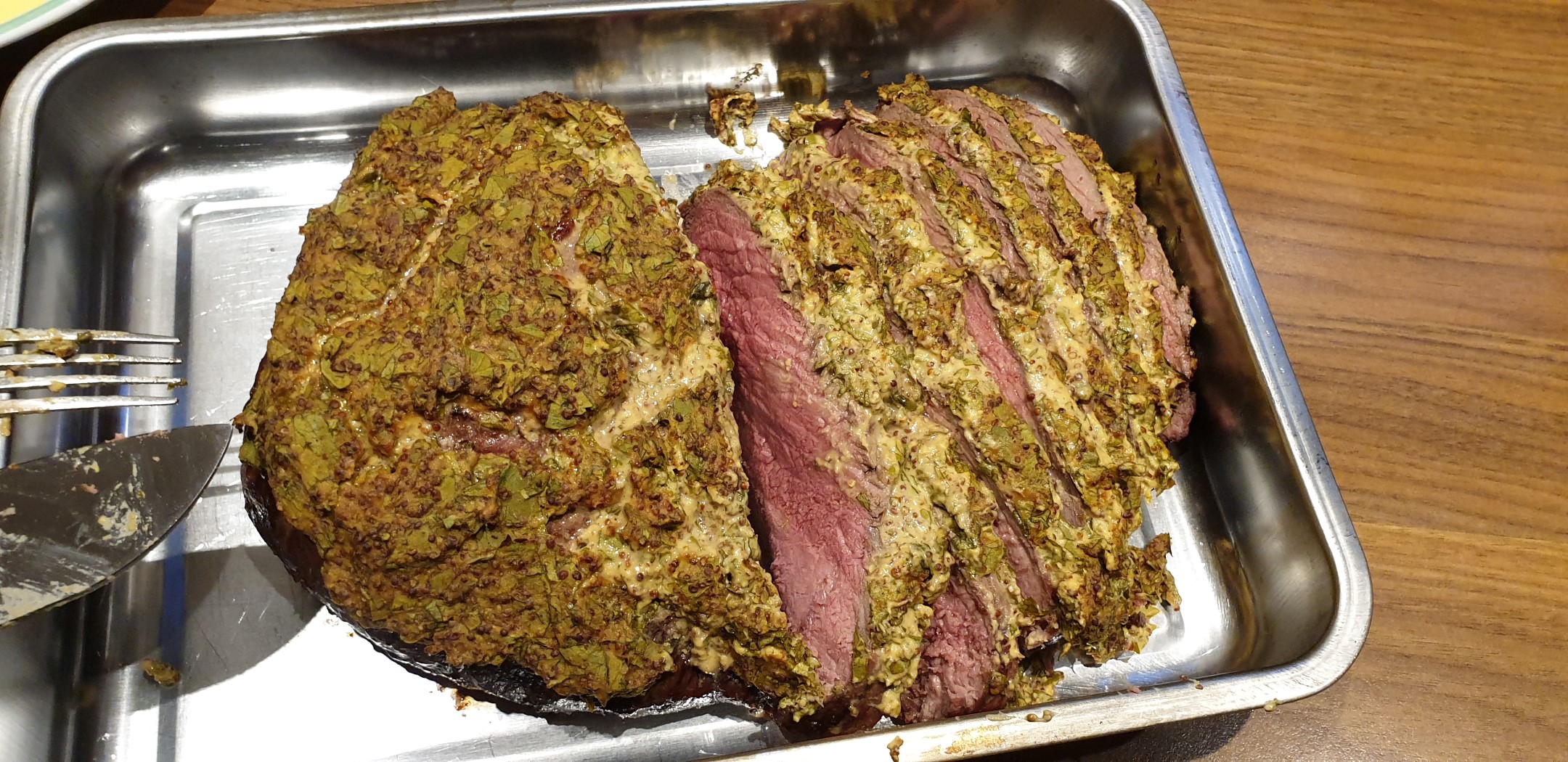 Als Beilage zum Roastbeef mit Kräutersenfkruste eignet sich u.a. Kartoffelgratin sehr gut. Als Gemüse reichen wir dann gerne Bohnen im Speckmantel. Sehr Lecker! Guten Appetit.