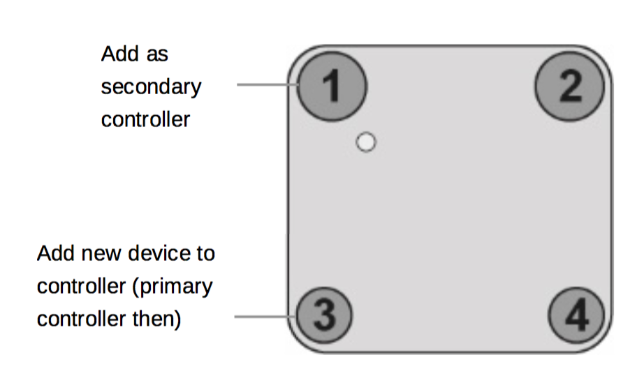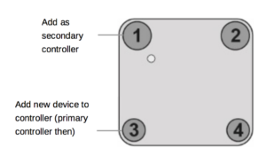 - Inklusion: IoT Gateway in den Inklusionsmodus bringen, Einen beliebigen Taster des Schalters für eine Sekunde drücken; Inclusion Mode wird durch rot/grünes blinken der LEDs angezeigt bis zum Timeout (nach 10 Sekunden).