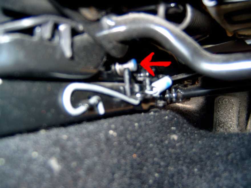 Die ganze Aktion läßt sich am einfachsten durchführen, wenn Ihr den Sitz auf höchste Position setzt. Dann gelangt Ihr etwas einfacher an die zu bearbeitenden Stelle.