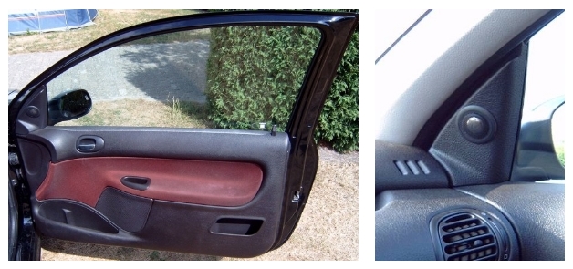 Auf den beiden folgenden Fotos könnt Ihr euch schon einmal anschauen, wie meine Peugeot 206 Türen nach dem Einbau der Lautsprecher und der Tweeter aussahen. Somit habt Ihr die Möglichkeit euch ein Bild von der ganzen Geschichte und dem Resultat machen. Das Ganze war auch wirklich gar nicht kompliziert und auch leicht zu realisieren. Deshalb kann der Einbau auch von Nicht-(Bastel-)Profis durchgeführt werden. Nur Mut…