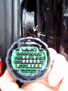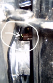 Da ich nun aber schon einige Male an meinem Peugeot „gebastelt“ habe, konnte ich mich noch ganz gut erinnern, dass man den Anschlussstecker des Blinkers von innen sehen kann und versuchte, den Blinker nun von innen zu lösen und von dort dann heraus zu drücken. Dazu musste erst einmal der Systemstecker, der die Türelektronik mit dem Hauptchassis verbindet, abgedreht bzw. abgezogen werden, um den nötigen Platz für die Aktion zu erhalten. Ich erreichte nun zwar mit meiner Hand den Stecker von hinten, konnte Ihn aber leider auch auf diesem Weg nicht lösen. Nun musste ich also zu anderen Mitteln greifen und etwas „riskieren“.