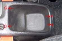 Auf dem Bild mit der roten Kennzeichnung kann man die Stellen erkennen, an der die Mittelarmlehne verschraubt wird. Außerdem seht Ihr noch drei Abbildungen der MAL im noch nicht eingebauten Zustand.