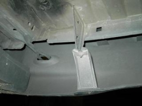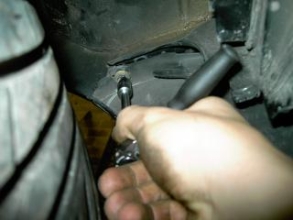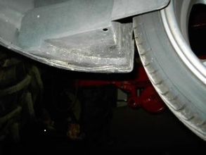 Als erstes muss der Innenradkasten demontiert werden. Dazu wird von unten die Schraube gelöst, die den Kasten mit der Heckschürze verbindet (siehe Bild links, nähe Reifen von unten). Anschließend muss der Clips, welcher sich zwischen der Karrosserie und dem Reifen befindet, herausgenommen werden (siehe Abbildung rechts).