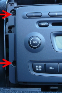 Um das Originalradio entfernen zu können muss grundsätzlich die Mittelkonsolenverkleidung demontiert werden. Diese ist primär mit Clips gehalten, jedoch auch noch mit EINER Torxschraube. Um an diese zu gelangen muss man dann jedoch zuvor die kleine Schalterleiste, in der sich unter anderem der Warnblinker- und die Zentralverriegelungsschalter befinden, unterhalb der Mittelkonsole entfernen.