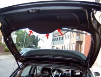 Die Heckklappenverkleidung ist nur geklemmt, siehe folgende Abbildung: