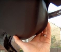 An der markierten Stelle einfach mit der Hand die Verkleidung langsam abziehen (geht ganz einfach).