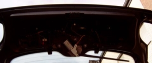 Jetzt kann die neue, lackierte 2004er Heckleisten Version auf der Heckklappe montiert werden. Einfach die Leiste einklicken, den Kofferraumgriff von innen wieder aufstecken, die beiden 10er Muttern festschrauben, das Gestänge wieder an entsprechender Stelle einhängen und die Verkleidung wieder einsetzen.