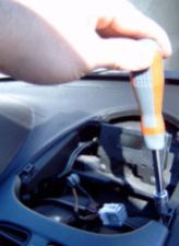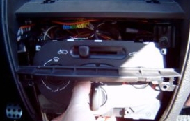 Dann kann man die gesamte Hauptmittelkonsole inkl. Radio von dem Armaturenbrett abziehen. Einfach kräftig gleichzeitig oben und unten an der gesamten Konsole ziehen. Die Hauptmittelkonsole ist nur mit den beiden Torxschrauben oben, wie zuvor bereits erwähnt, verschraubt. Die Konsole wird sonst nur durch Klammern/Halter im Armaturenbrett gehalten. Sieht kompliziert aus – ist es aber wirklich nicht.