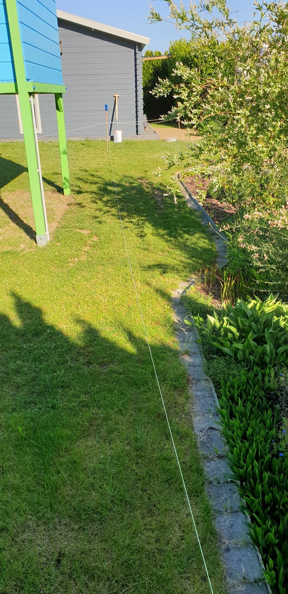 Nun kam das „uncoole“ an dem Projekt: Der Bodenaushub! Ich habe mit Hilfe von Metall-Stangen und Mauerschnur den geplanten Verlauf des Leitungsrohr auf dem Rasen geplant und dabei versucht möglichst effektiv vorzugehen, damit ich möglichst hohen Druck an den Ventilen habe. Als nächstes wurde die Grasnarbe abgestochen, vorsichtig auf Seite gelegt und der Bodenaushub vorgenommen. Hier bin ich auf Spatentiefe gegangen. Ich werde, wie auch alles andere bisher bei mir im Garten, zum Winter hin, die Leitungen mit Hilfe von Druckluft komplett Wasserfrei pusten. Habe den Mutterboden auf Schubkarren und in Spießbütten „geparkt“. Sektionsweise wurde das Rohr von mir in der Erde verlegt und dann auch wieder mit Mutterboden bedeckt. Danach konnte dann die Grasnarbe wieder aufgelegt werden. Habe diese dann mit einem Gummihammer angedrückt und in die korrekte Position gebracht. Noch ein Tipp am Rande: Das PE-Rohr bzw. die 100 Meter Rolle Rohr sind sehr widerspenstig. Hier solltet Ihr darauf achten, das vernünftig abzurollen und im Idealfall die Montage bei warmen Temperaturen vorzunehmen. Je wärmer bzw. je länger das Rohr in der Sonne liegt, desto einfacher lässt es sich damit arbeiten.